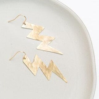 Desert Moon Design • Jenna Lightning Bolts Earrings • Hammered Brass