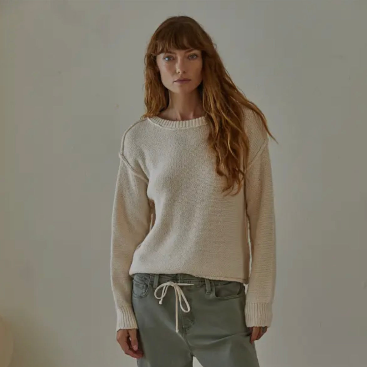 By Together • Hailee Cotton Crop Pullover Sweater • Ivory