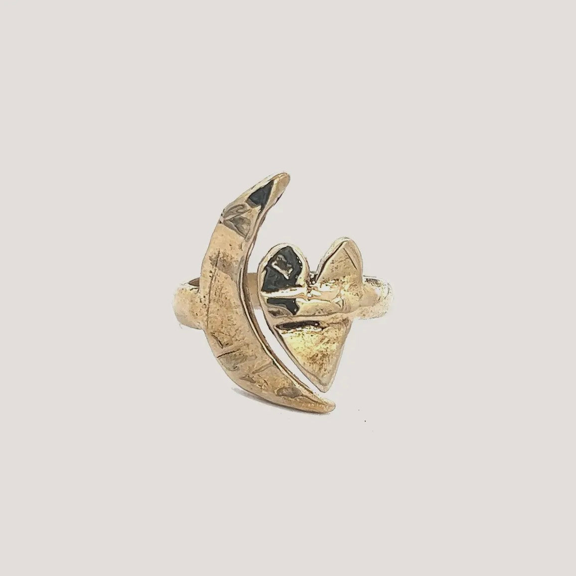 Dea Dia • Artemis Moon & Heart Ring • Brass