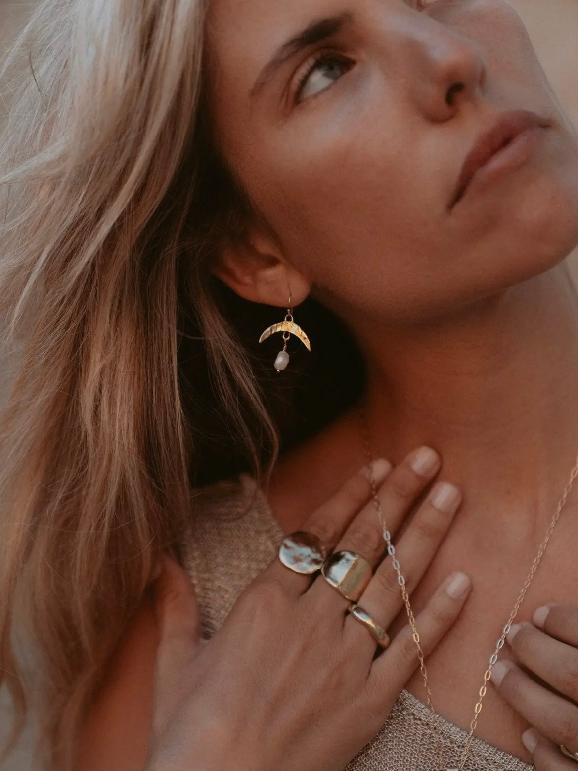 All Dea Dia jewelry is designed in house by owner Jessica Lawson. Utilizing hands-on methods such as wax carving, soldering, beading and wire wrapping each piece of jewelry is handcrafted. Our cast jewelry pieces are created in a woman-owned factory in Downtown Los Angeles.
