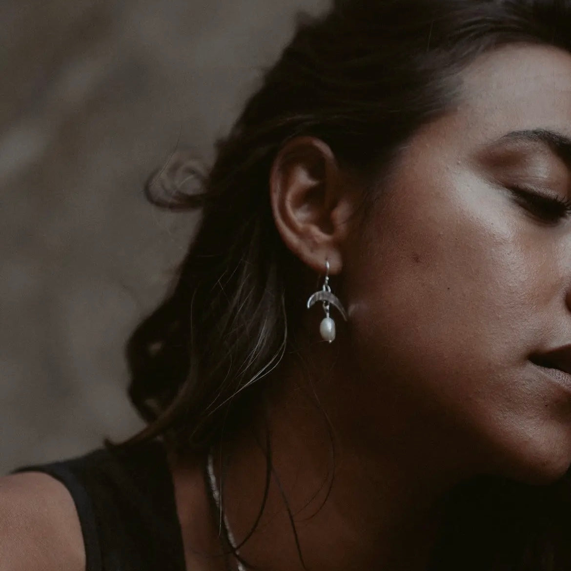 Dea Dia • Cressida Pearl Moon Dangle Earrings • Sterling Silver