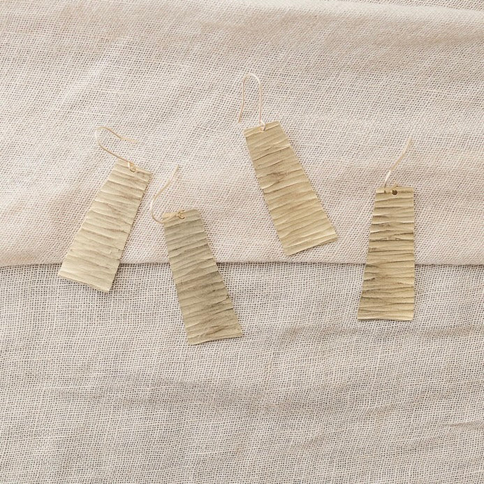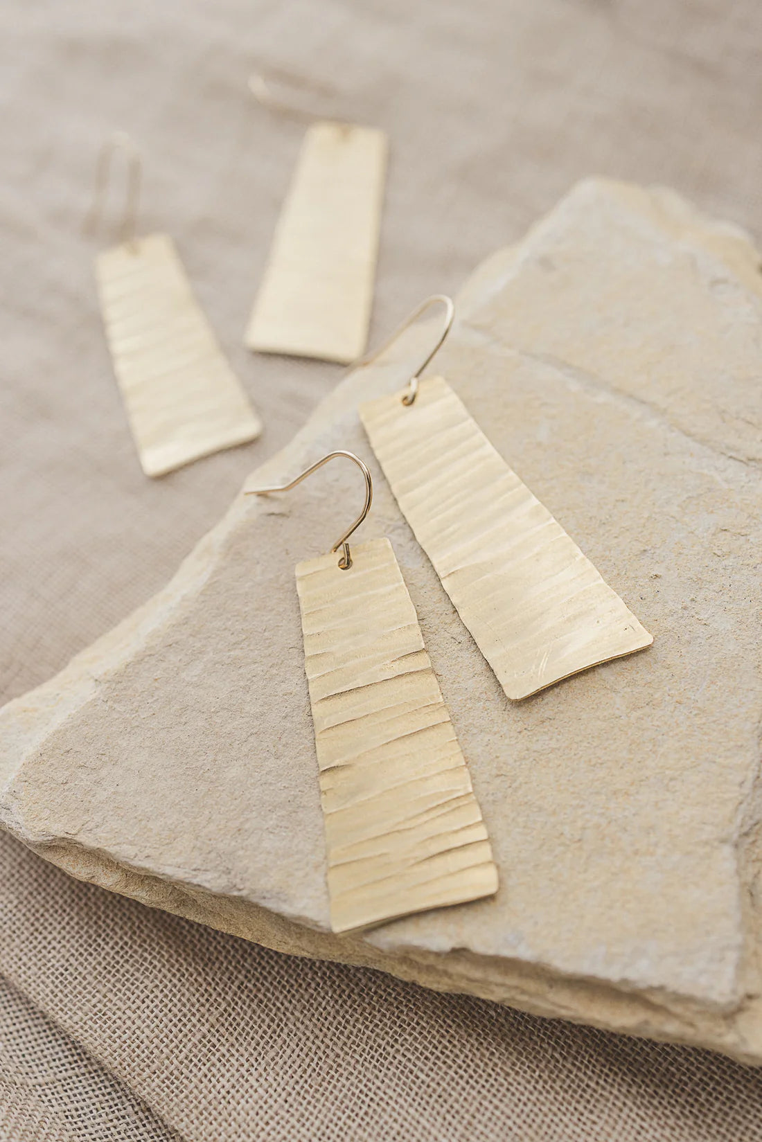 These artsy earrings are everything, with their geometric tease and playful shape, the Art Deco earrings will add some hip vibes to your jewelry collection. Designed & handmade in our coastal studio, the Art Decos are hammered to perfection out of brass and hung on a 14k gold filled ear wire. All ear wires are hypoallergenic, lead and nickel free. Earrings measure approximately 2 1/4" by 3/4"