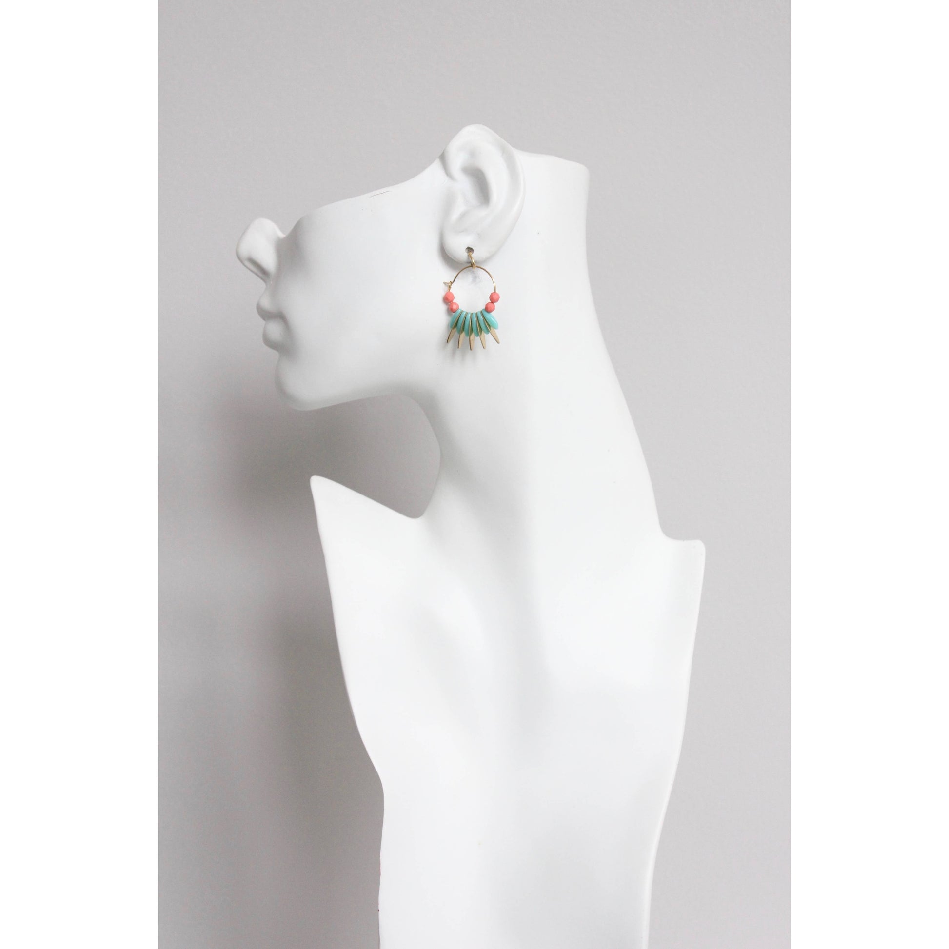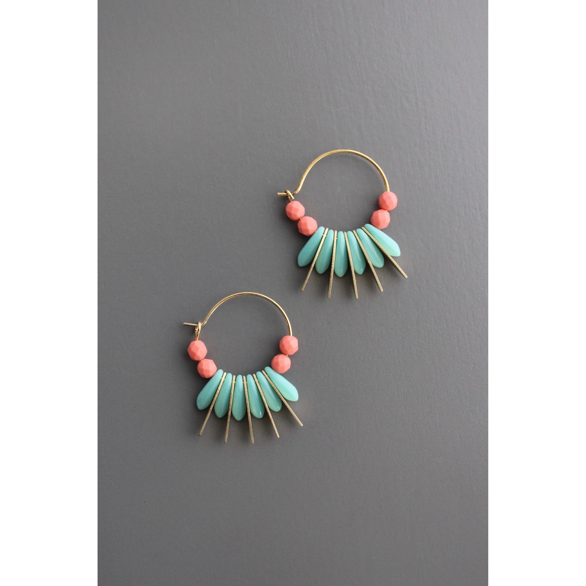 David Aubrey • Small Bead Hoop Earrings • Turquoise Coral Glass