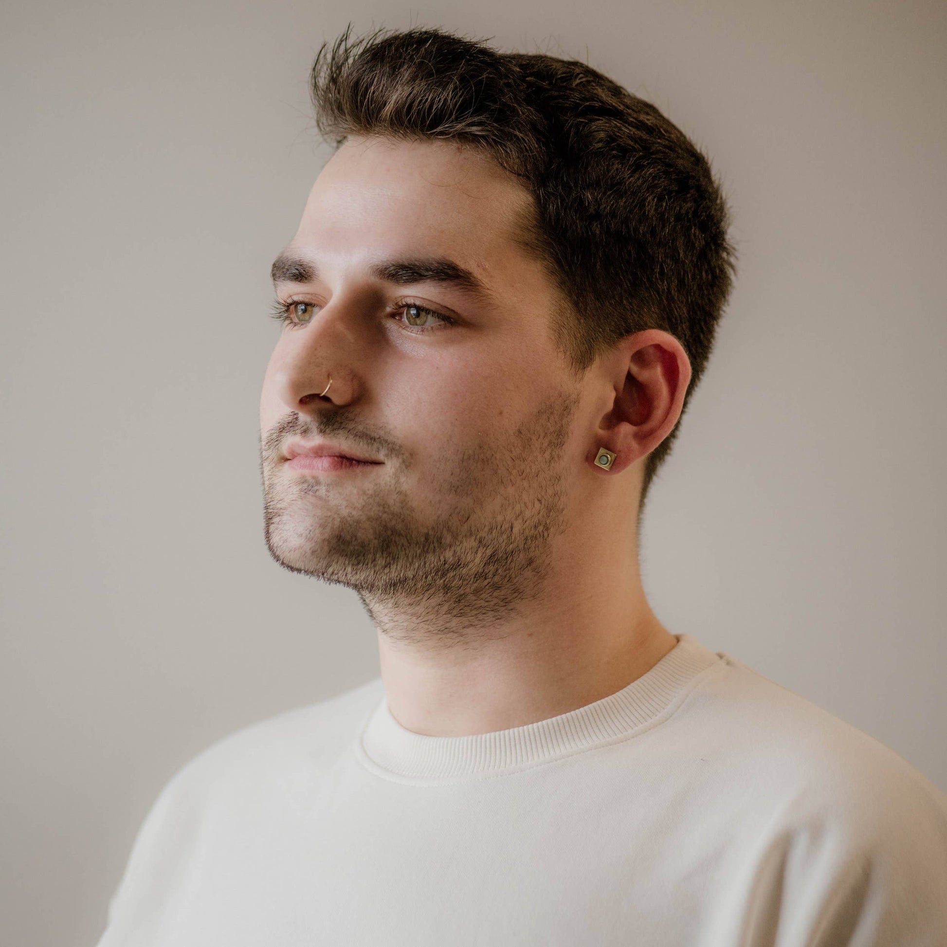 4mm turquoise stones with a solid brass square on sterling silver ear wire.