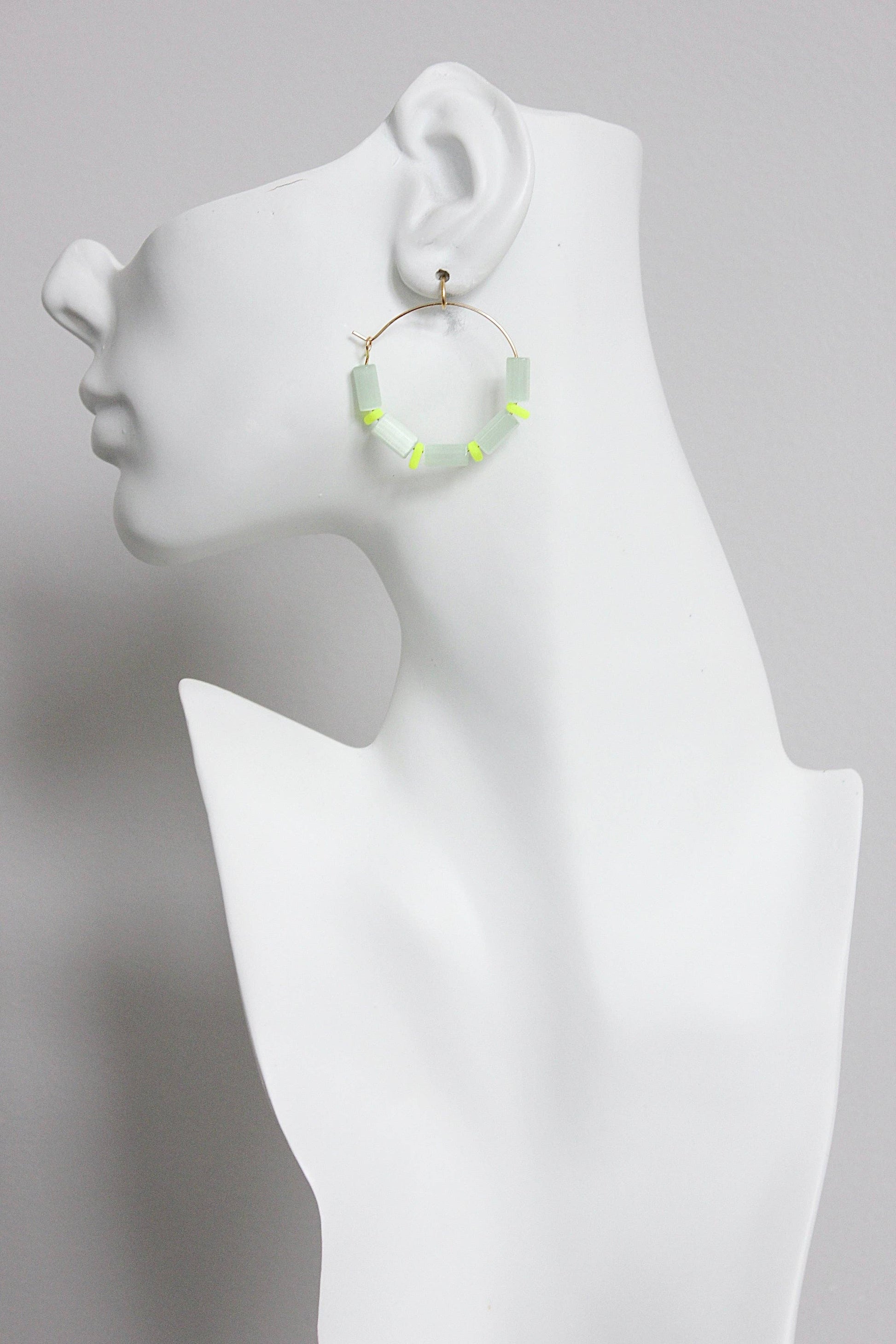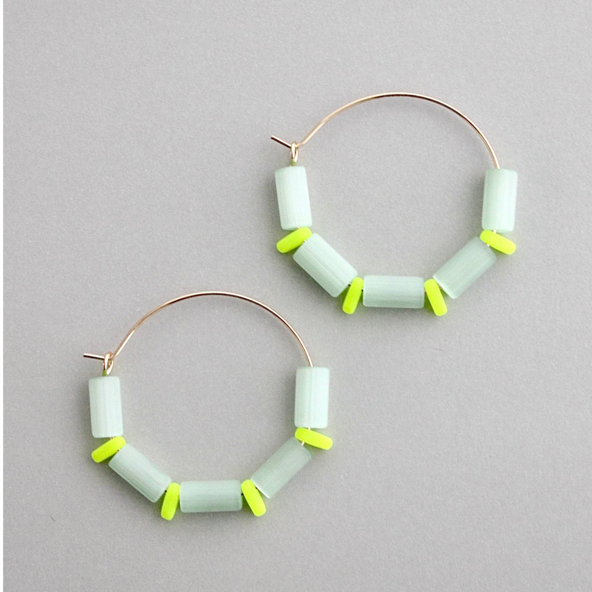 David Aubrey • Beaded Hoop Earrings • Mint Green Neon Yellow