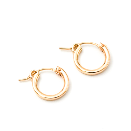 Simple gold filled tiny hoop earrings. Half inch wide. Designed & made by M. Martin in California.