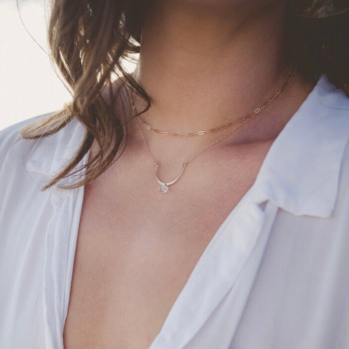 Desert Moon Design • Taylor Horseshoe Herkimer Diamond Necklace • Sterling Silver or 14K Gold Fill