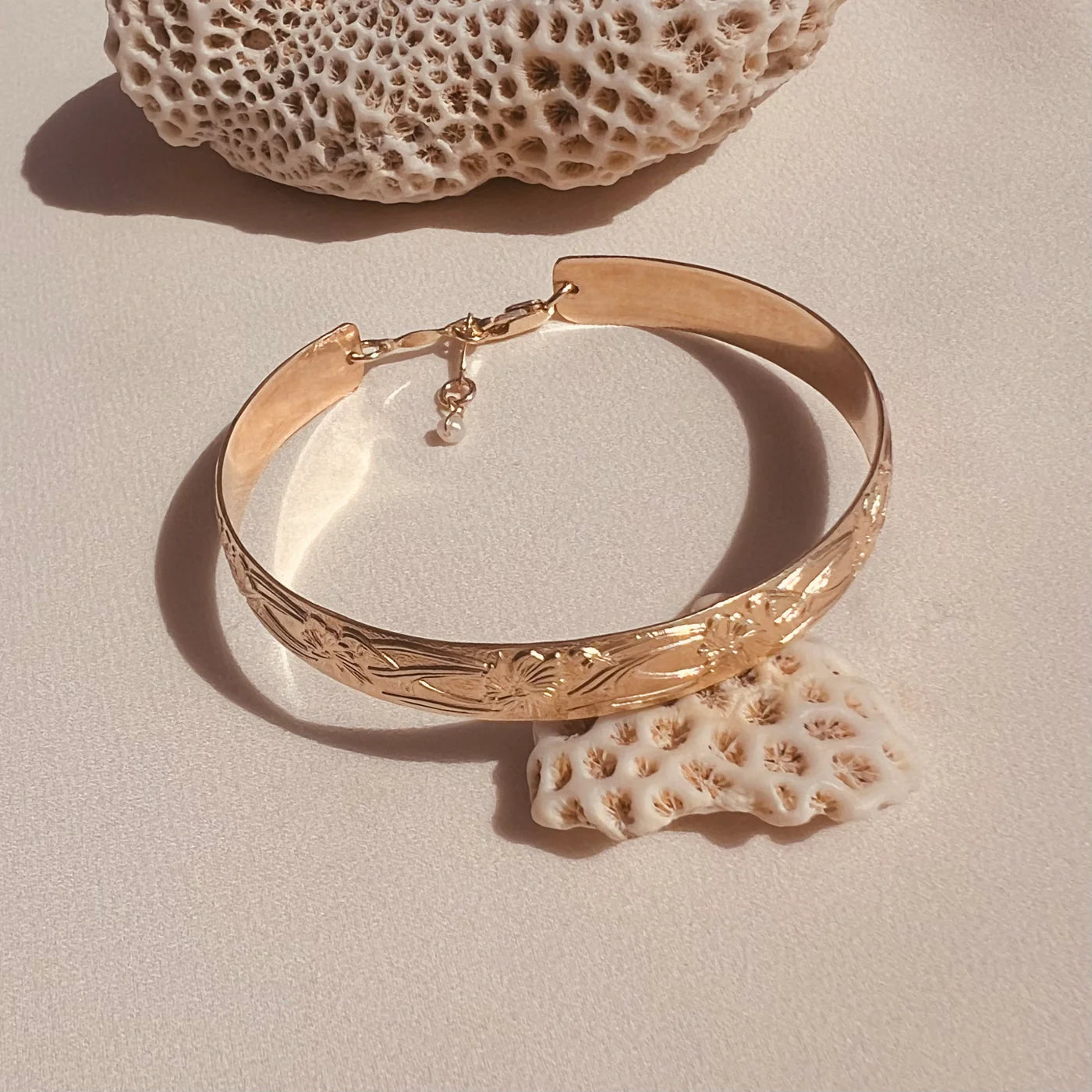 The Fiore bracelet is both bold and feminine. A stunning and meticulously handcrafted bangle bracelet with floral texturing.