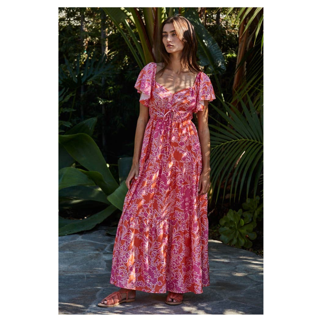 Floral Sweetheart Maxi Dress • Orange & Pink