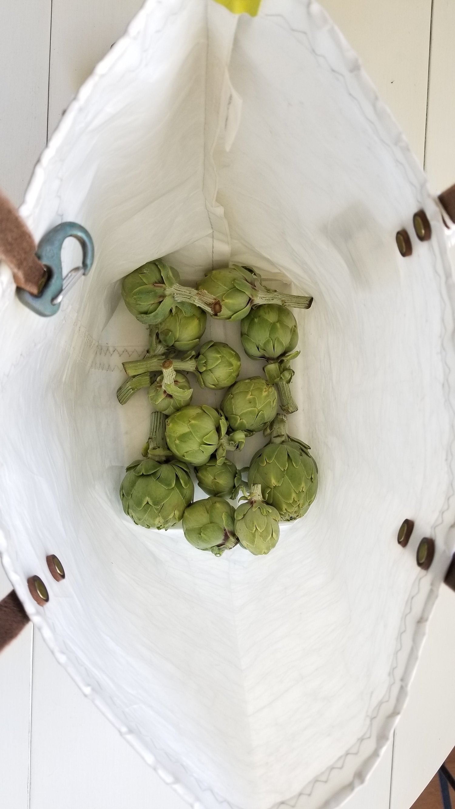 Load up the Provisioner with your farmers market spoils or grocery store essentials. This tote is lightweight yet tough, don’t be afraid to pack heavy. This market tote features our sturdy, stand-up design for easy filling and unpacking as well as an old brass sail hank converted to a key clip.