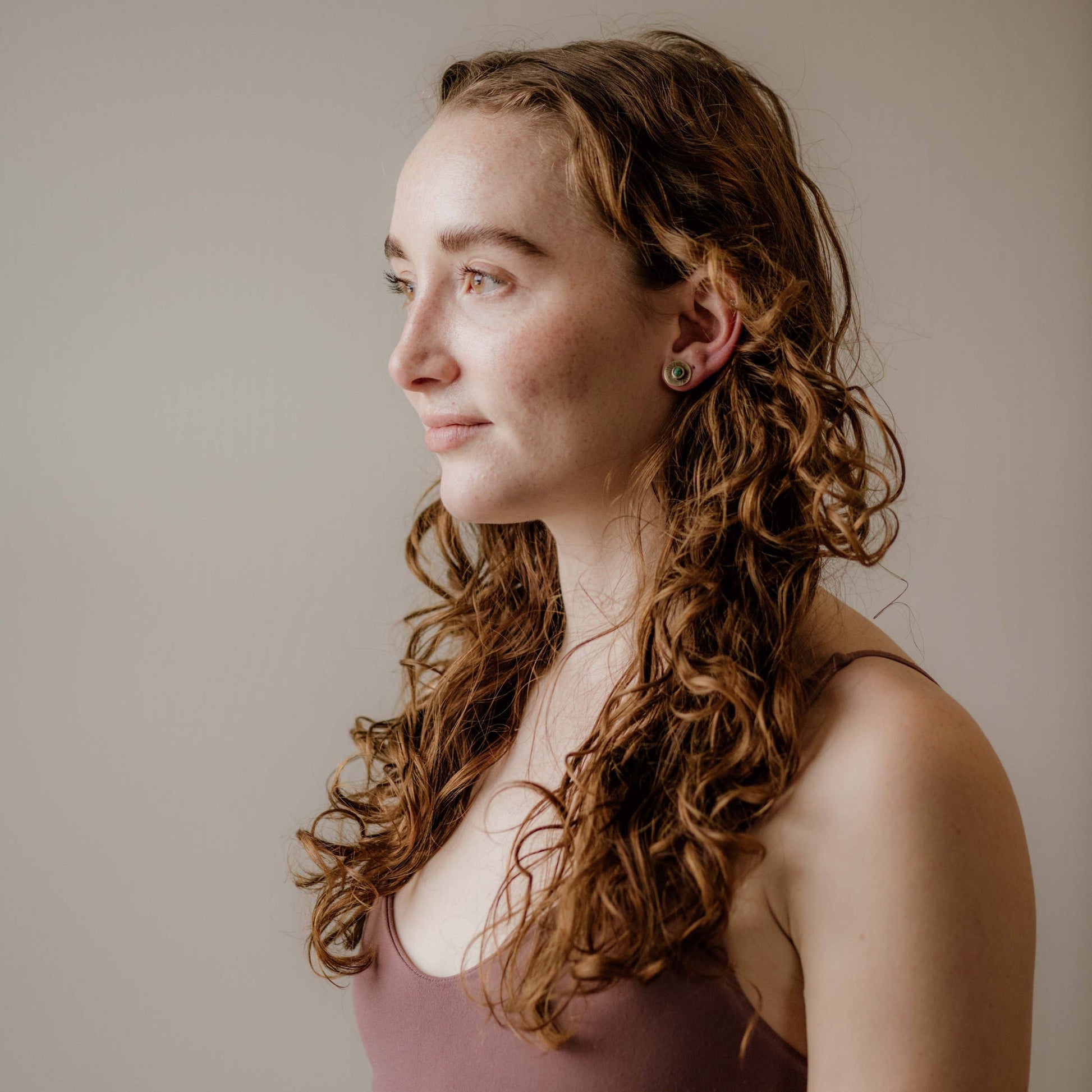 4mm turquoise stones on small antiqued, brushed brass discs with sterling silver studs.