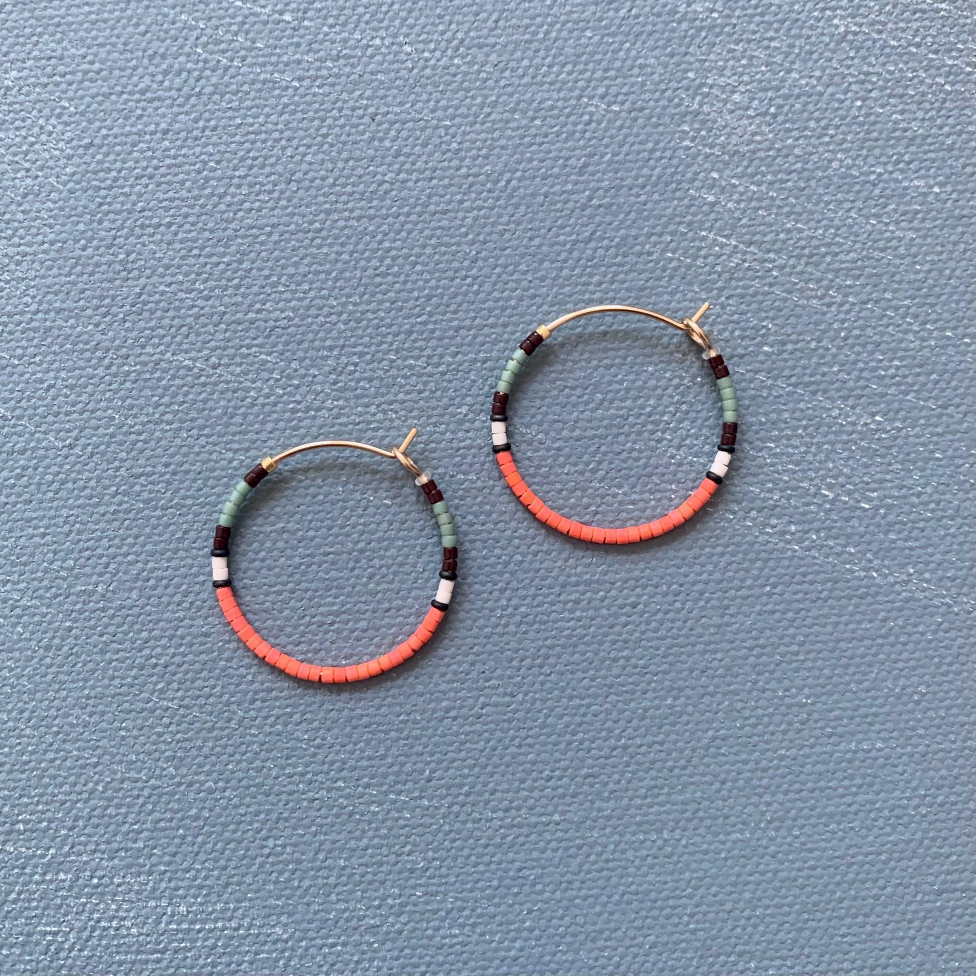 Lightweight Japanese glass beads adorn a handmade, 14k gold filled hoop.