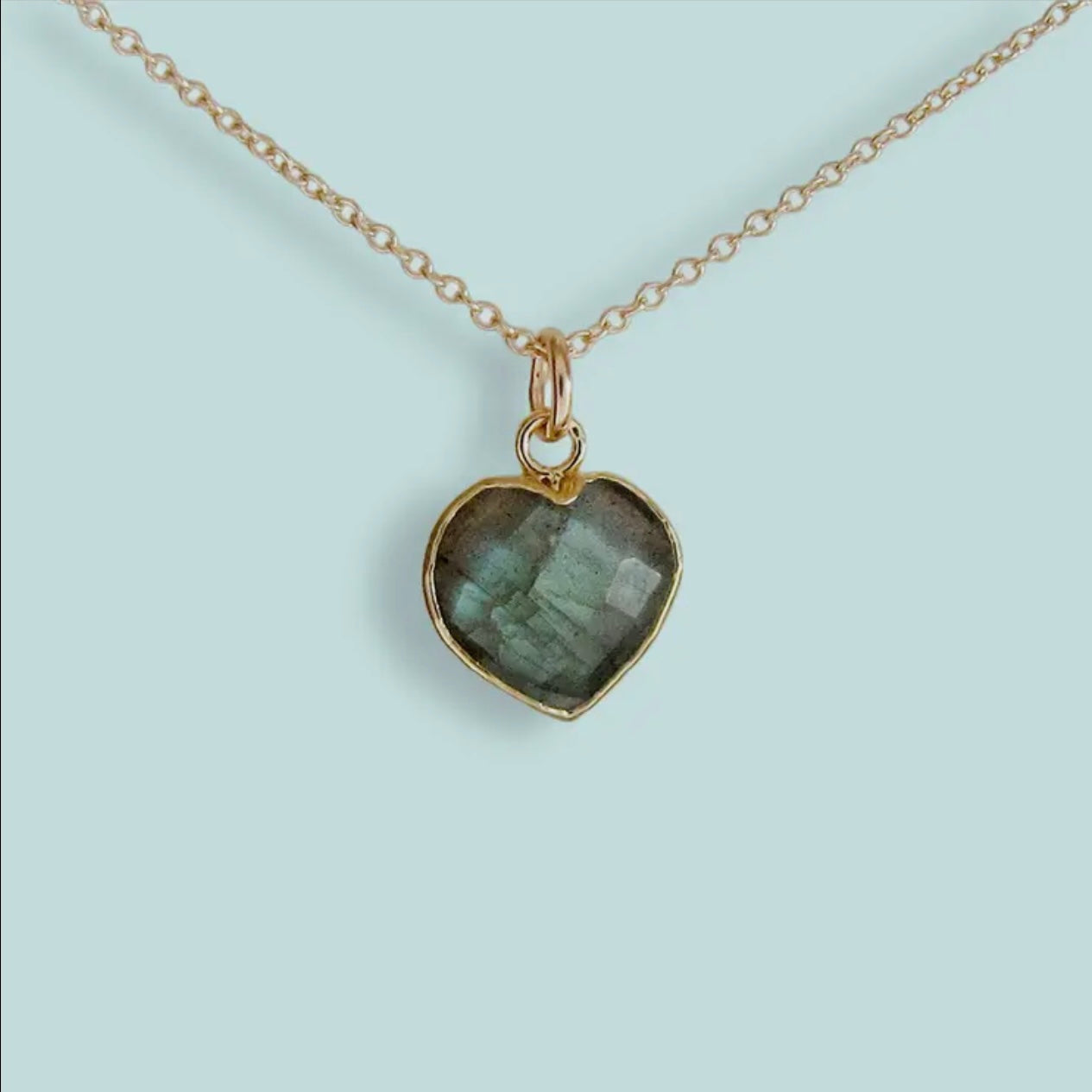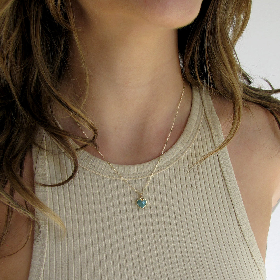 Stone heart pendant on delicate 14k gold filled cable chain. 18" long.