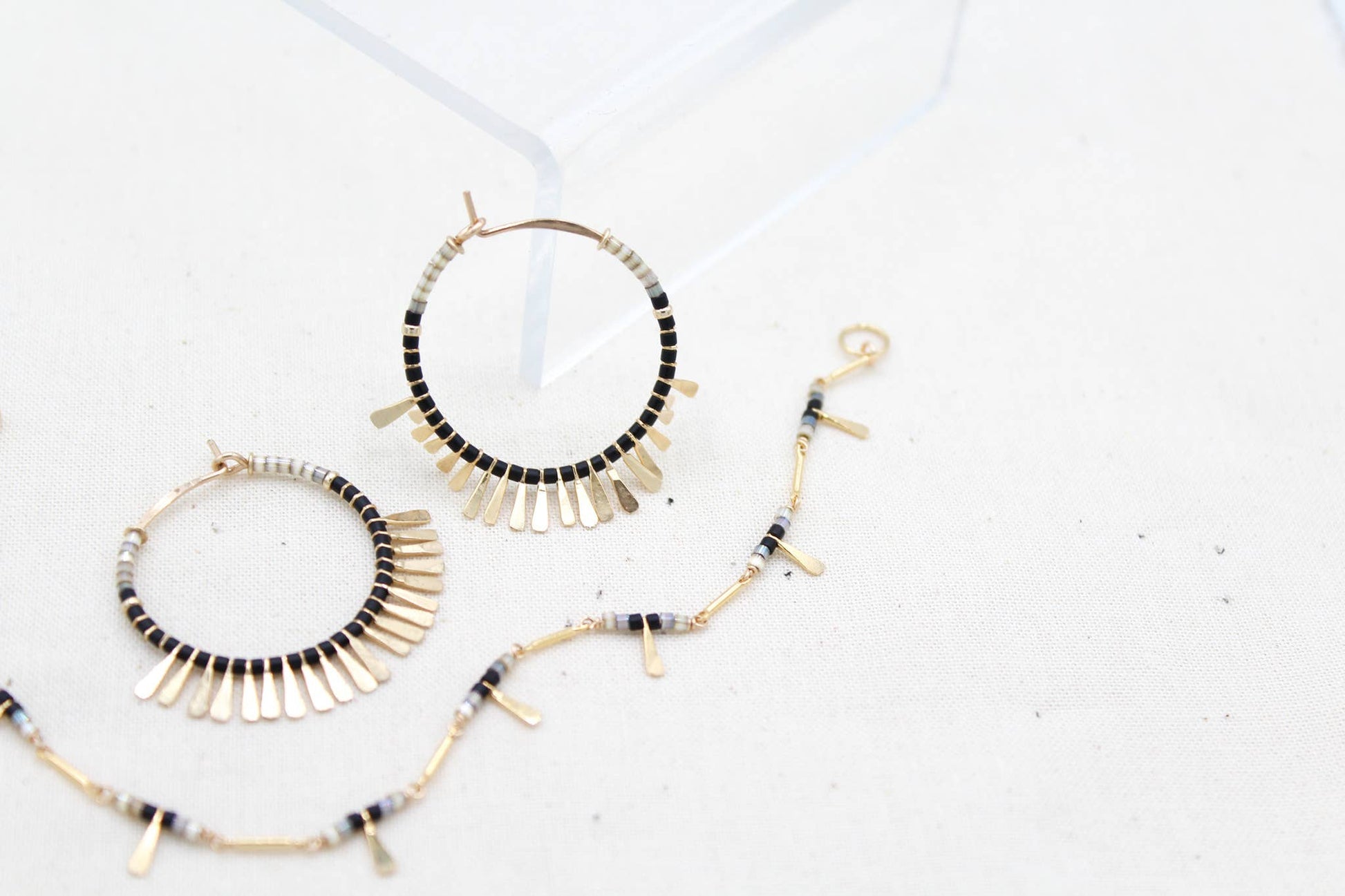 14k gold fill wire and tassels, glass seed beads. 1"