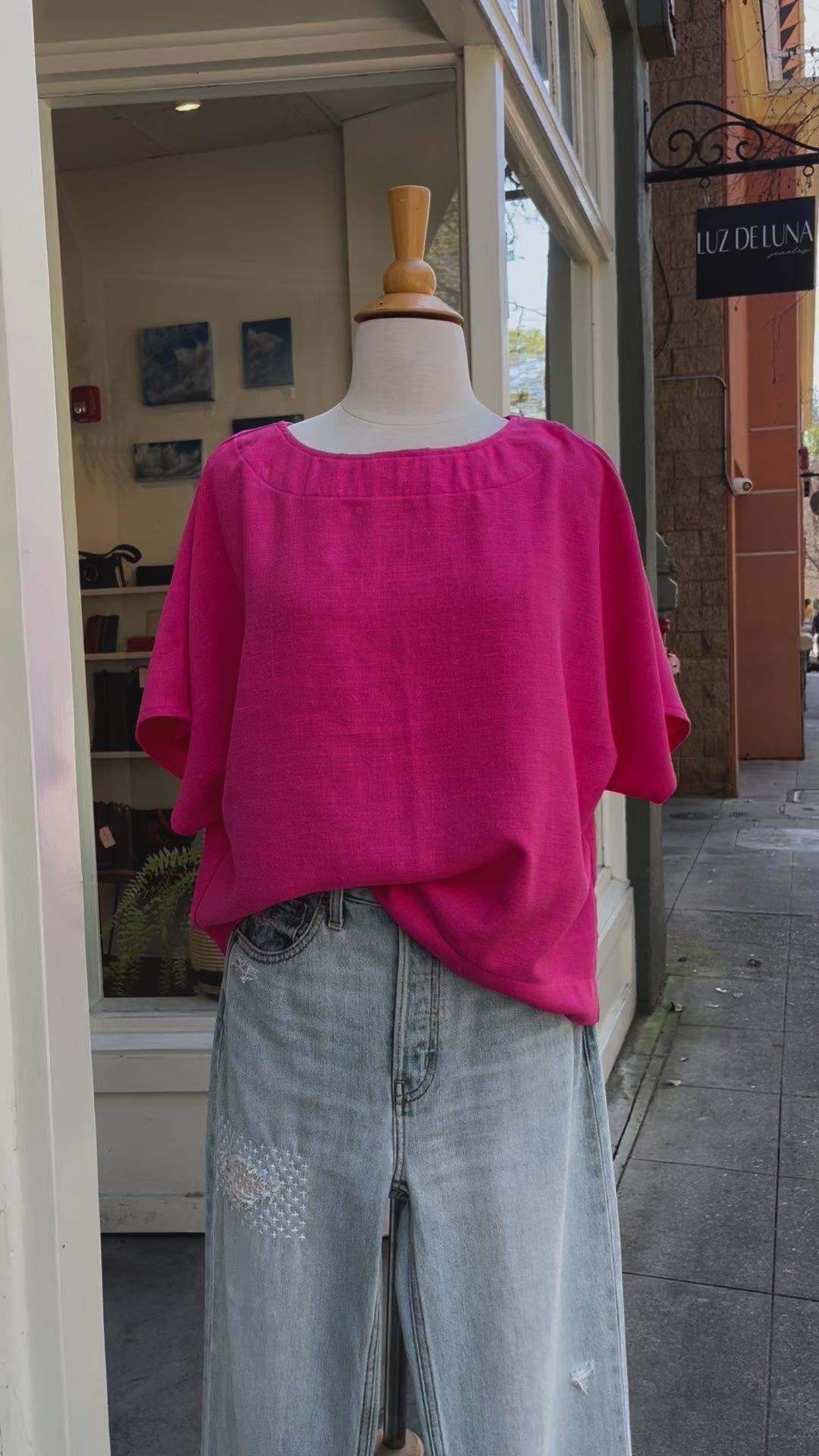 Terra • Handmade Loose Fit Linen Rayon Top • Pink