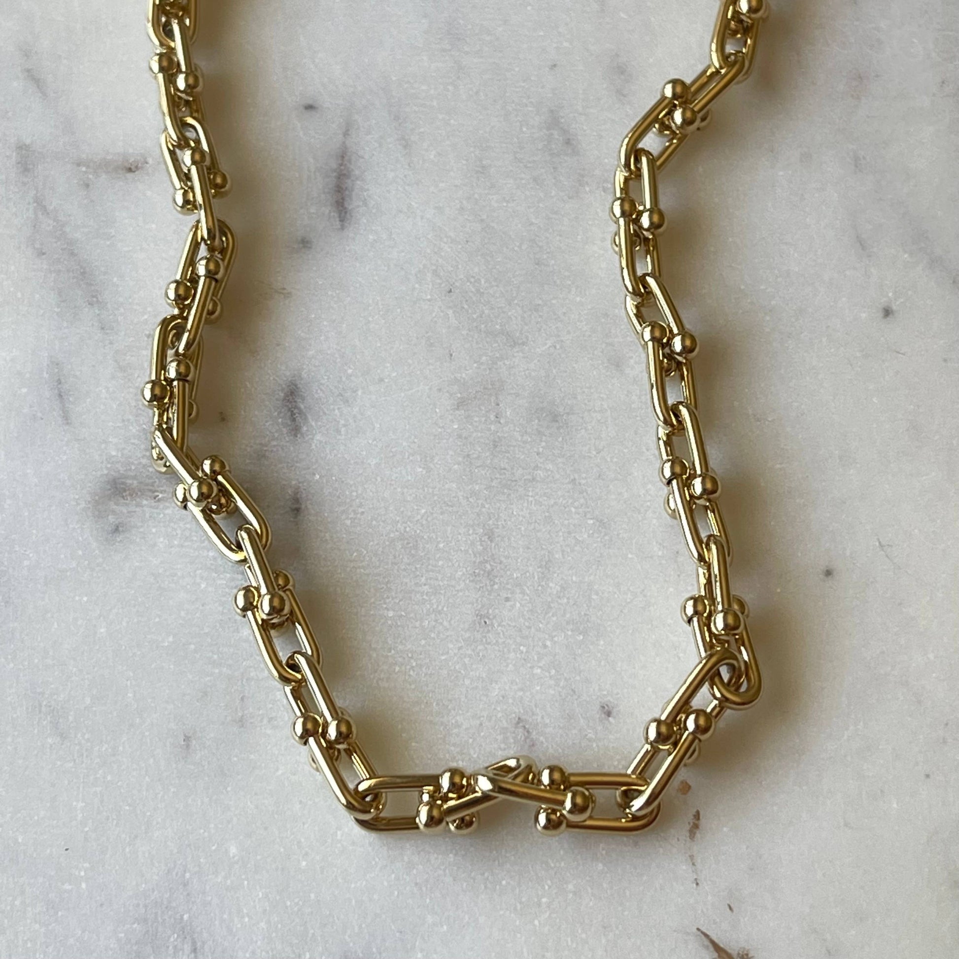 Valeria is a little bit country, a little bit rock n roll. But she’ll always dance if the music is good. Horse bit link chain. 14k gold filled 18” total length.