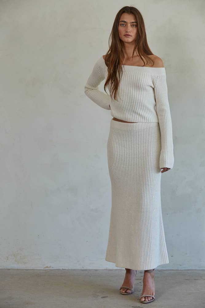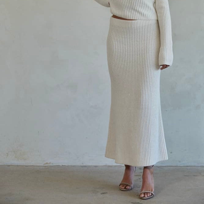 Knit Ribbed Sweater Waist Elastic Band Flare Midi Skirt (No Lining) Style W1645 60% cotton 40% acrylic Imported